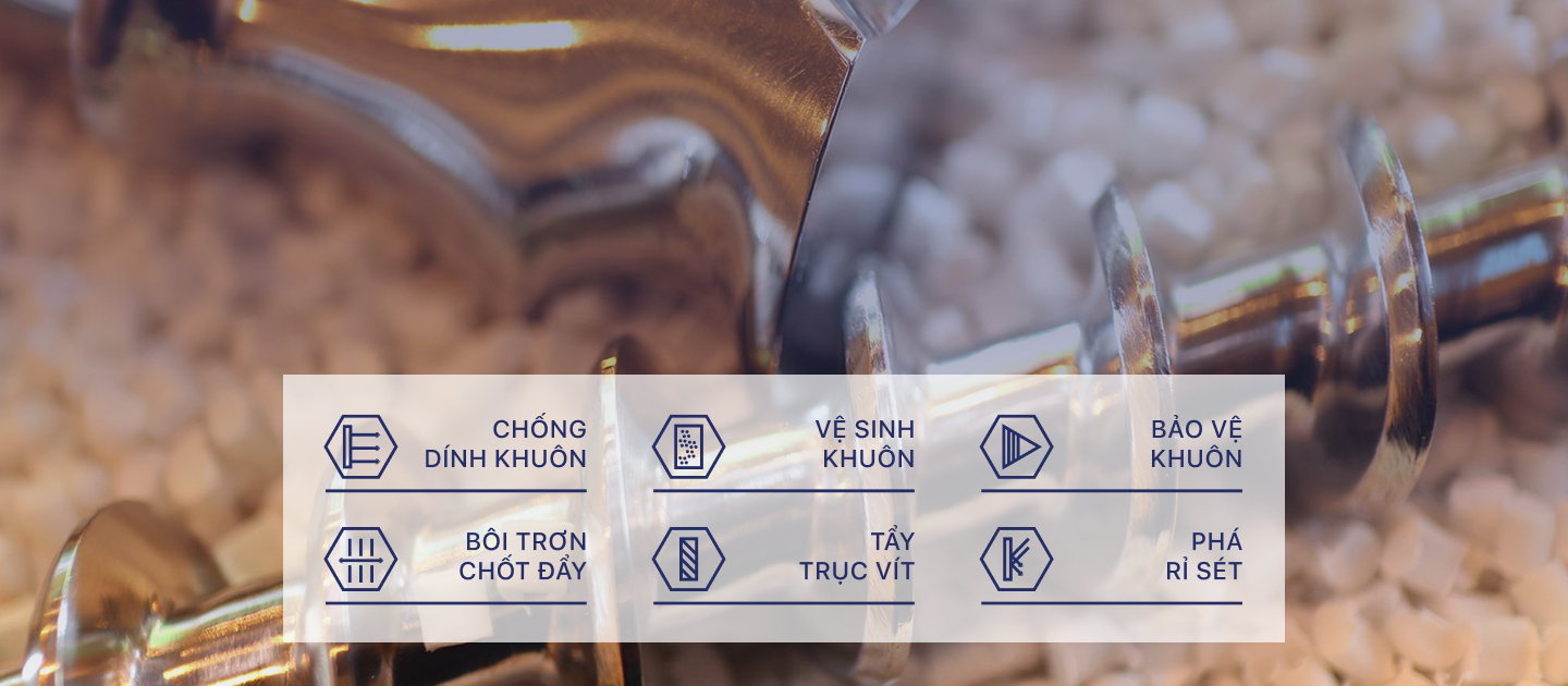 Giảm thời gian dừng máy, làm sạch trục vít – nòng cảo nhanh, bảo vệ khuôn chống gỉ và ổn định chất lượng bề mặt sản phẩm, phù hợp đổi màu/đổi vật liệu liên tục trong sản xuất.