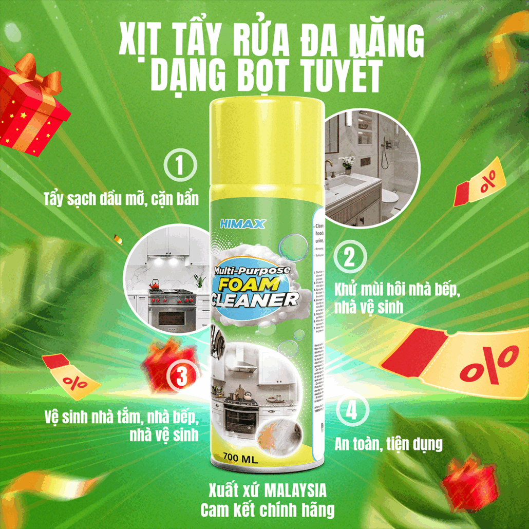 Vệ sinh bếp dạng bọt tuyết: lớp bọt dày bám chắc, kéo chất bẩn ra ngoài, tiết kiệm công sức cọ rửa.