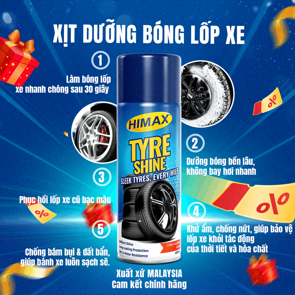 Spray Evenly: Spray the tyre polish evenly onto the sidewalls of the tyre. Focus on one tyre at a time. Ensure a light and even coating on the tyre’s surface.